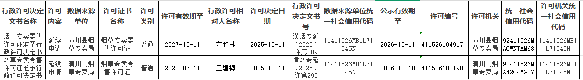 潢烟专延〔2025〕许第289号志潢烟专延〔2025〕许第290号