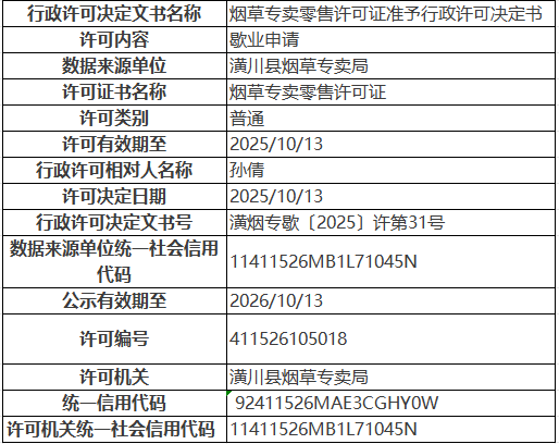 潢烟专歇〔2025〕许第31号