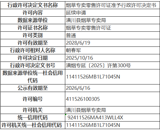 潢烟专延〔2025〕许第300号