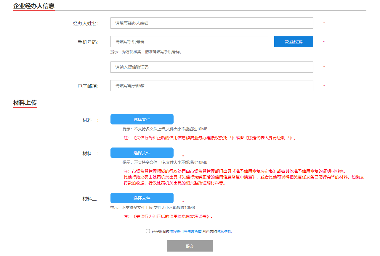 | 材料三: | 《失信行为纠正后的信用信息修复承诺书》 |